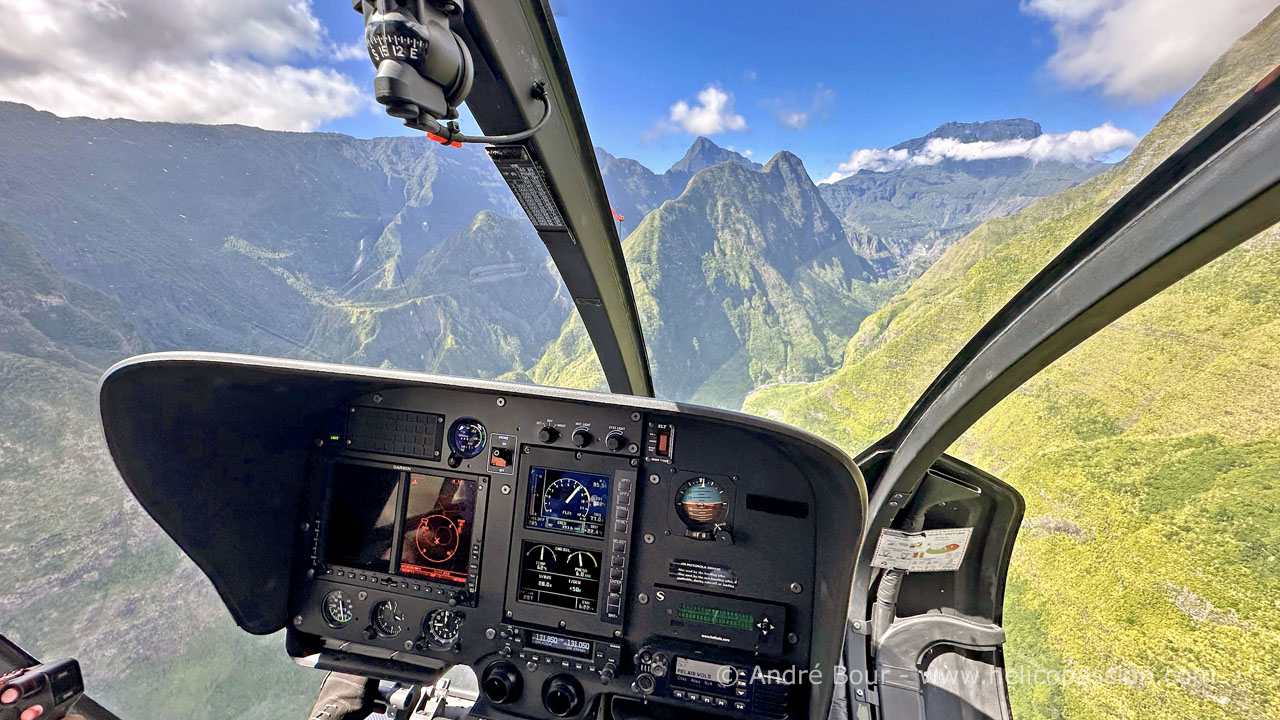 Profitez pleinement du panorama exceptionnel de La Réunion depuis le cockpit de votre hélicoptère.